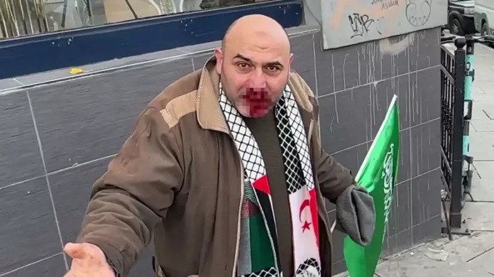 Pazartesi günkü mitingin adı, “Şehitlere Rahmet, Filistin’e Destek” idi. Boynunda Türk ve Filistin bayraklı atkı taşıyan elli yaşlarında bir vatandaş, elinde kelime-i tevhid bayrağı taşıdığı için yoldan geçen bir saldırgan tarafından yumruklandı.