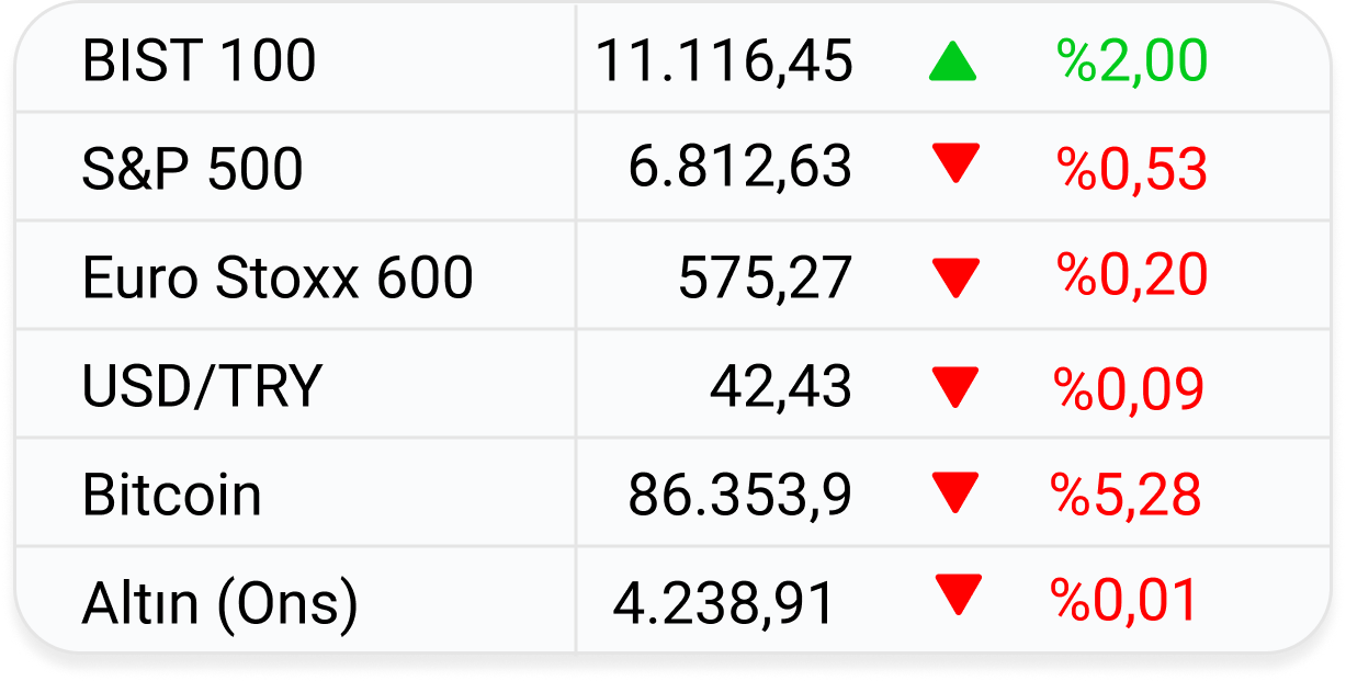 Değerler piyasa kapanışının ardından Investing üzerinden sağlanmıştır.