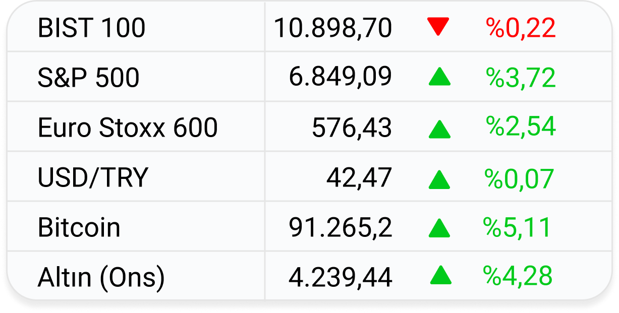 Değerler piyasa kapanışının ardından Investing üzerinden sağlanmıştır.