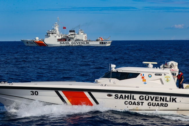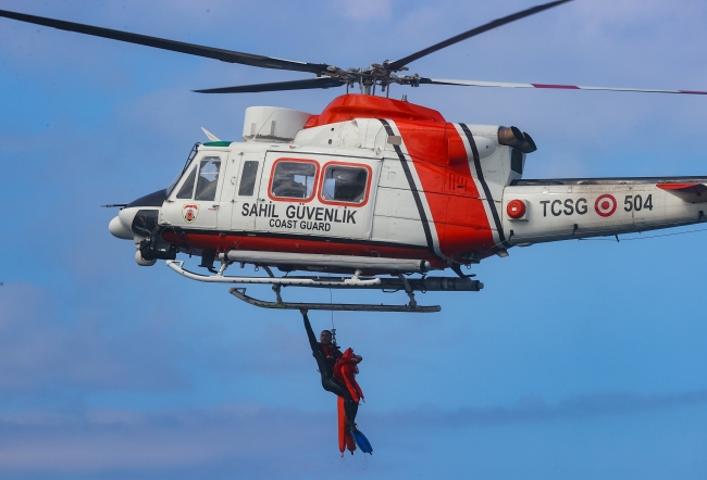Görüntüler tarafından Midilli ile Sakız adaları arasında gerçekleştirilen arama kurtarma tatbikatından.