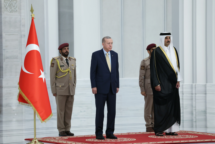 Cumhurbaşkanı Recep Tayyip Erdoğan, Türkiye-Katar Yüksek Stratejik Komite 9. Toplantısı’na katılmak üzere bulunduğu Katar’ın başkenti Doha’da, Katar Emiri Şeyh Temim bin Hamed Al Sani tarafından resmi törenle karşılandı.