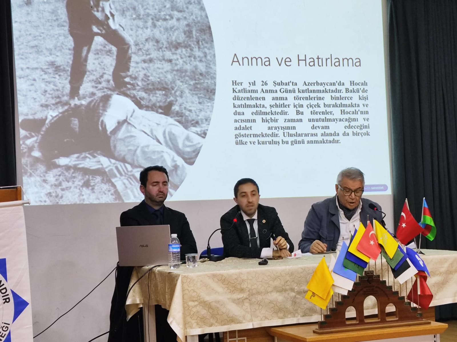 Konferansın açılış konuşmasını gerçekleştiren KİAMP-Karabakh is Azerbaijan Milli Platformu T.C. Genel Koordinatörü Dr. Elvin Abdurahmanlı, Hocalı Katliamı, Karabağ Savaşı sırasında 26 Şubat 1992 tarihinde Azerbaycan’ın Dağlık Karabağ bölgesindeki Hocalı kasabasında yaşanan ve Azeri sivillerin Ermenistan’a bağlı kuvvetler tarafından toplu şekilde öldürülmesi olayı olduğuna dikkat çekti.