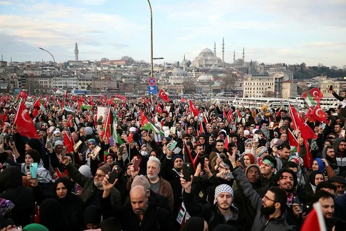 Pazartesi günkü mitingin adı, “Şehitlere Rahmet, Filistin’e Destek” idi. Boynunda Türk ve Filistin bayraklı atkı taşıyan elli yaşlarında bir vatandaş, elinde kelime-i tevhid bayrağı taşıdığı için yoldan geçen bir saldırgan tarafından yumruklandı.