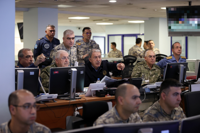 [Bakan Akar ve TSK Komuta Kademesi süreci harekat merkezinden takip etti.]