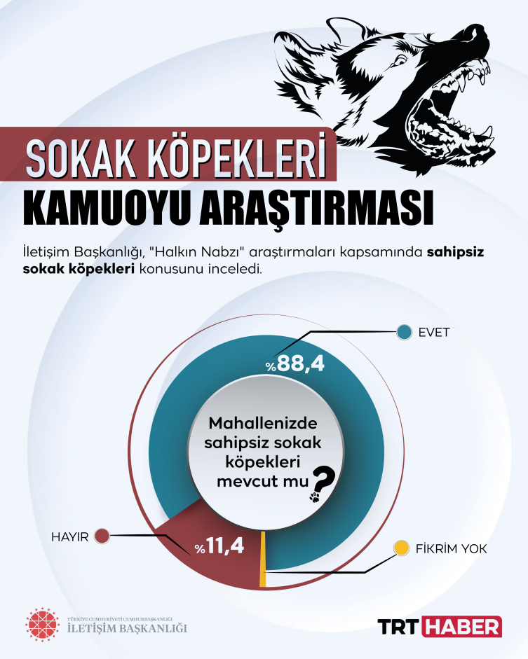 İletişim Başkanlığı, son yıllarda ülke gündeminde her daim kendine yer bulan sokak köpekleri konusunda 5 sorudan oluşan bir kamuoyu araştırması yaptı.