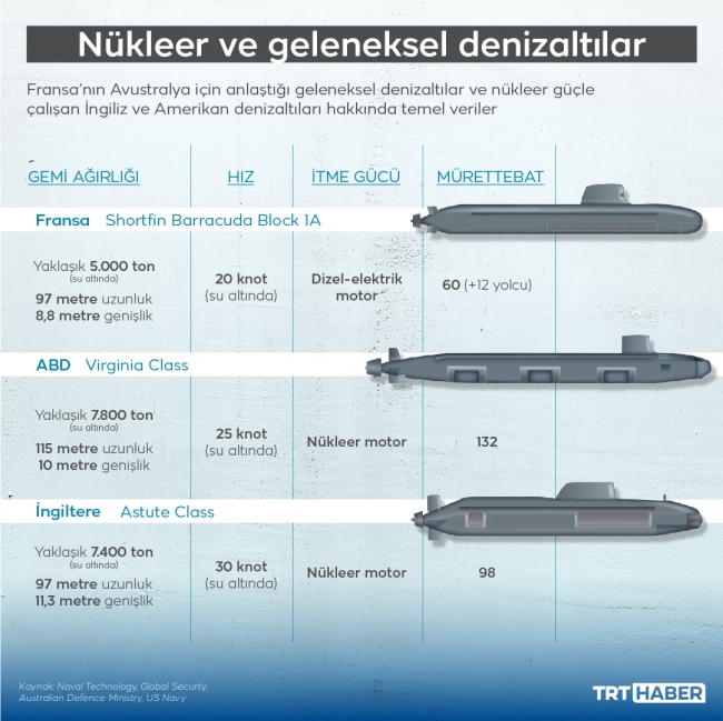 Avustralya, İngiltere ve ABD ile yapılan Aukus anlaşması kapsamında en az sekiz tane nükleer enerjili denizaltı inşa etme kararı aldı.
