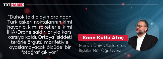 Duhok’taki olayın ardından Türk askeri noktalarının kimi havanla, kimi roketlerle, kimi İHA/Drone saldırılarıyla karşı karşıya kaldı. Kaan Kutlu Ataç bu durumu ‘şiddeti terörle örgütü marifetiyle kıyaslamayacak ölçüde’ diye tanımlıyor.